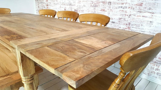 All Wood Extendable Rustic Farmhouse Dining Table Natural Hardwood Finish with Matching Benches & Chairs