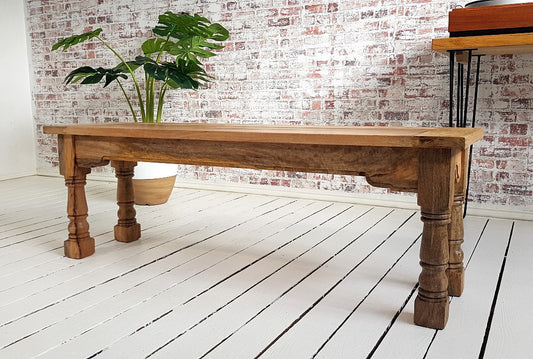 Rustic Dining Bench Natural Hardwood with Refectory Legs