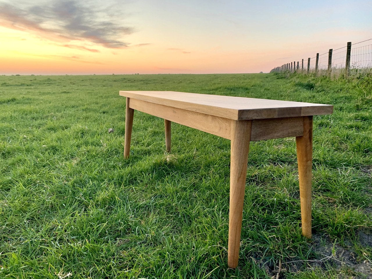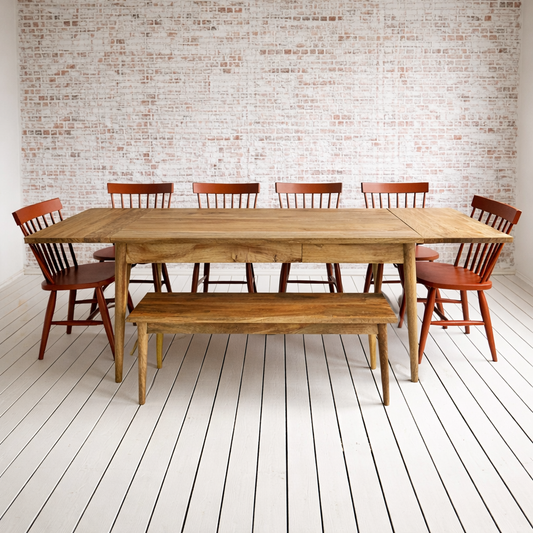 Mid-Century Modern Extending Hardwood Dining Table & Bench Set
