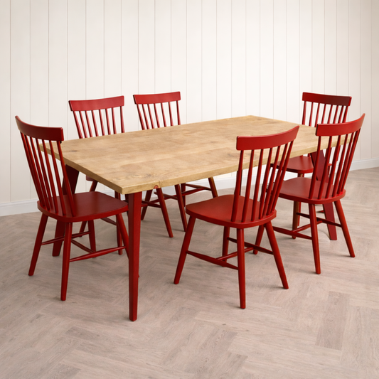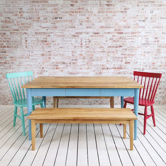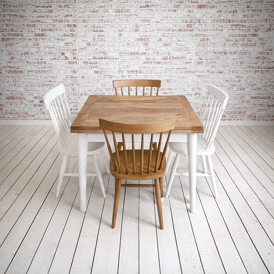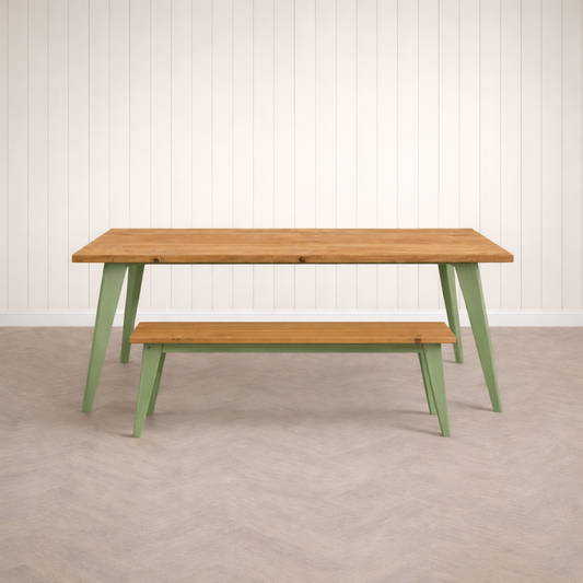 Nordic Tapered Leg Rustic Dining Table and Bench and Chairs Set Painted Finish