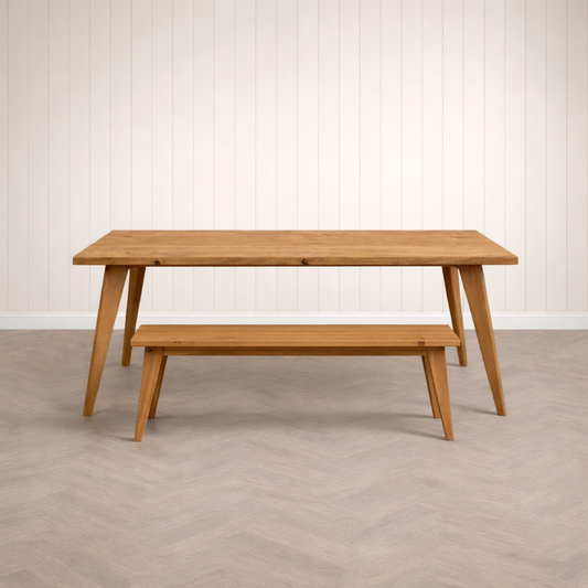 Nordic Tapered Leg Rustic Dining Table and Bench Set