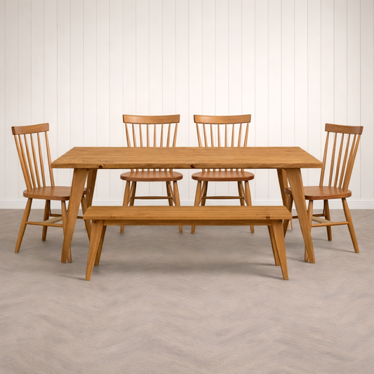 Nordic Tapered Leg Rustic Dining Table and Bench and Chairs Set