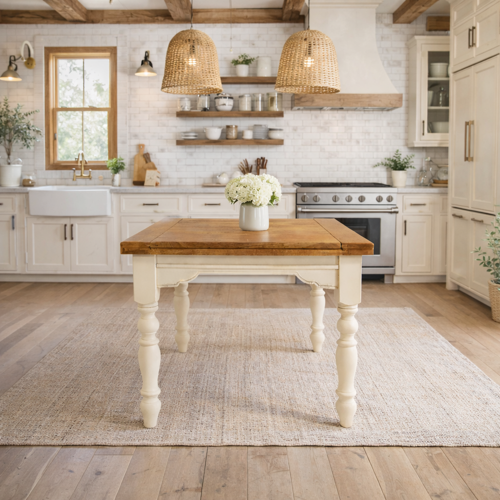 Extending Rustic Farmhouse Traditional Turned Leg Dining Kitchen Table Solid Hardwood - Painted Finish